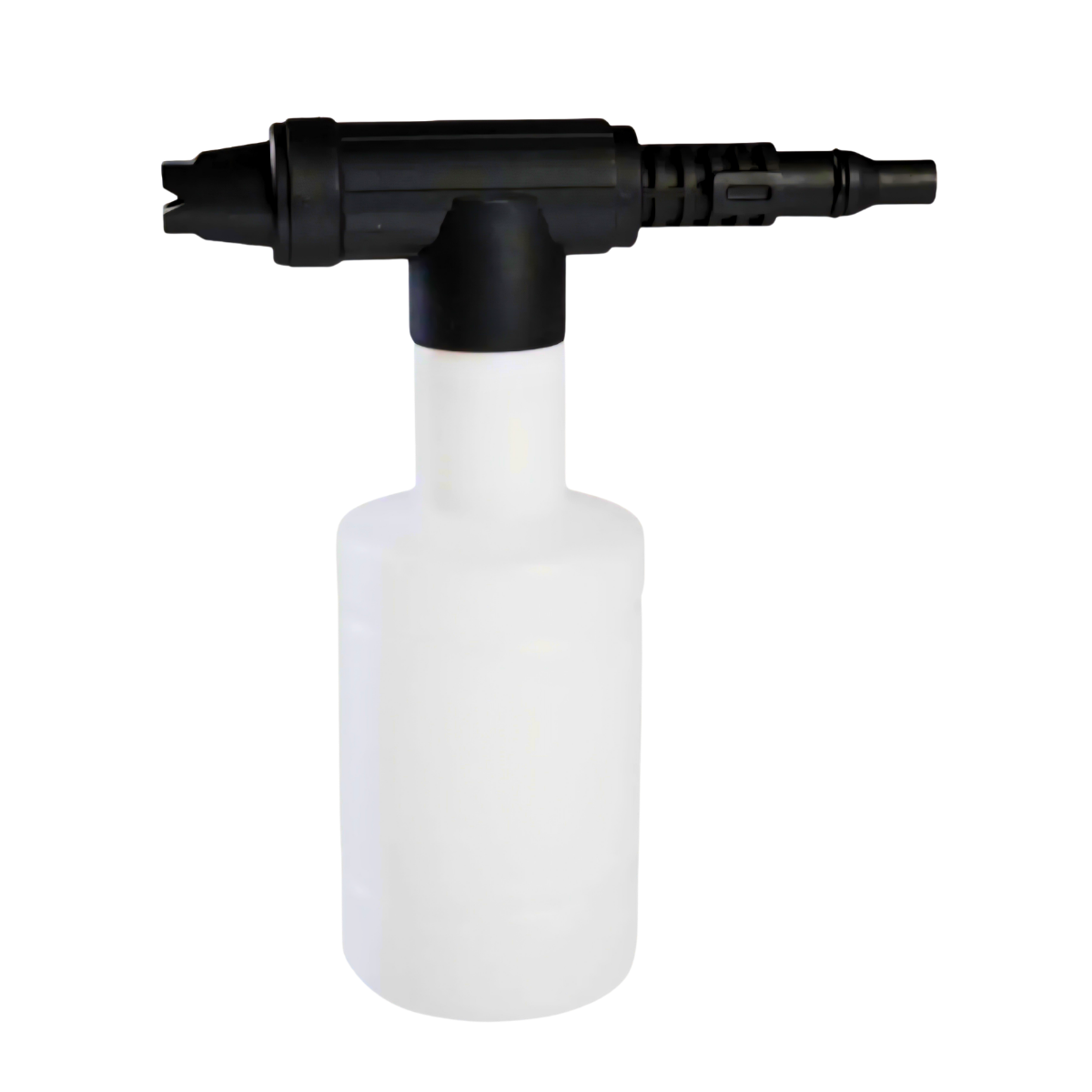 Este aplicador não gera espuma densa como o Snow Foam. O produto mistura o detergente ou shampoo com a pressão da lavadora, proporcionando uma aplicação uniforme e eficiente sobre a superfície a ser limpa.